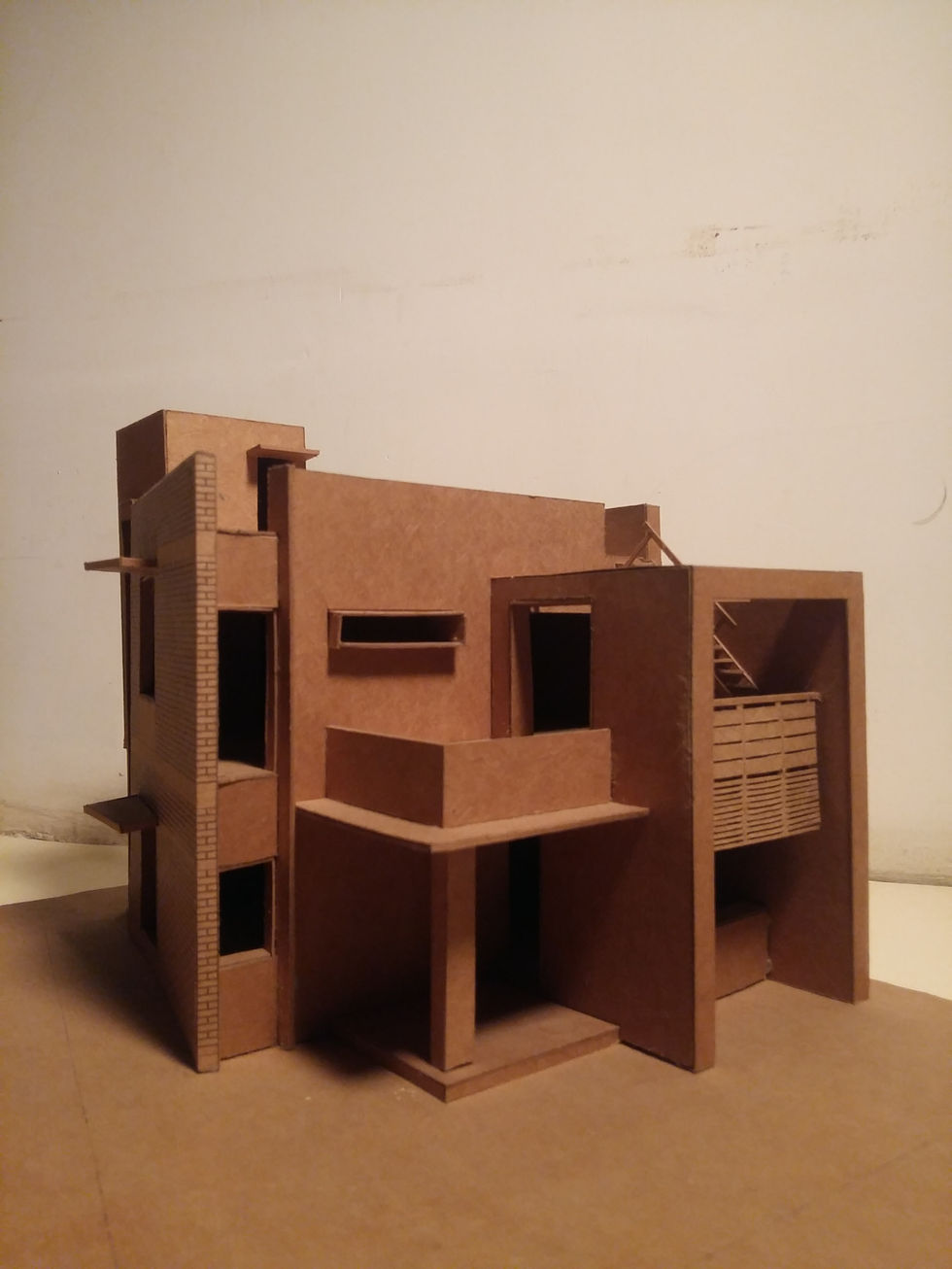 This residence is located in the densely populated residential area of ahmedabad. The surroundings didn’t had any remarkable architectural character, hence the attempt was to create a well designed and neatly crafted structure which can give some architectural presence to the locality. Being a project with a very modest budget, a lot of attention was given to the aspects of making the design affordable by retaining the old structural bay. A new addition was done to accommodate the current requirements of spaceand lifestyle. To mark the new addition the abutting skewed wall was made out of Exposed brick as a design element.